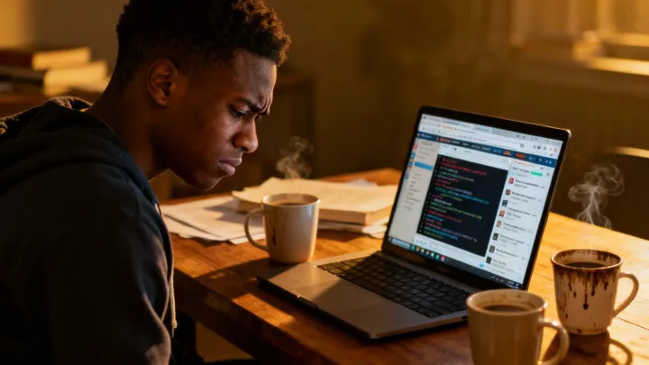 Week 3: Things are getting harder. JavaScript functions are confusing. You've rewatched the same video four times and still don't understand closures. But you push through because you're determined.